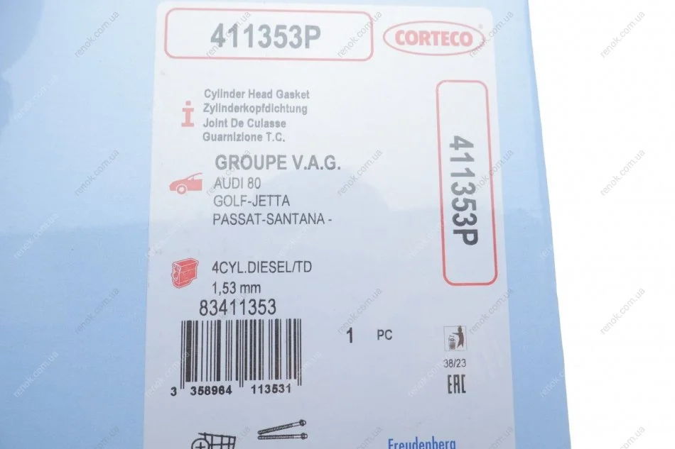 Прокладка головки блоку циліндрів CORTECO 411353P (068103383EH)