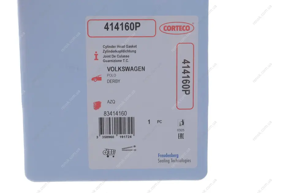 Прокладка головки блоку циліндрів CORTECO 414160P (03E103383F)