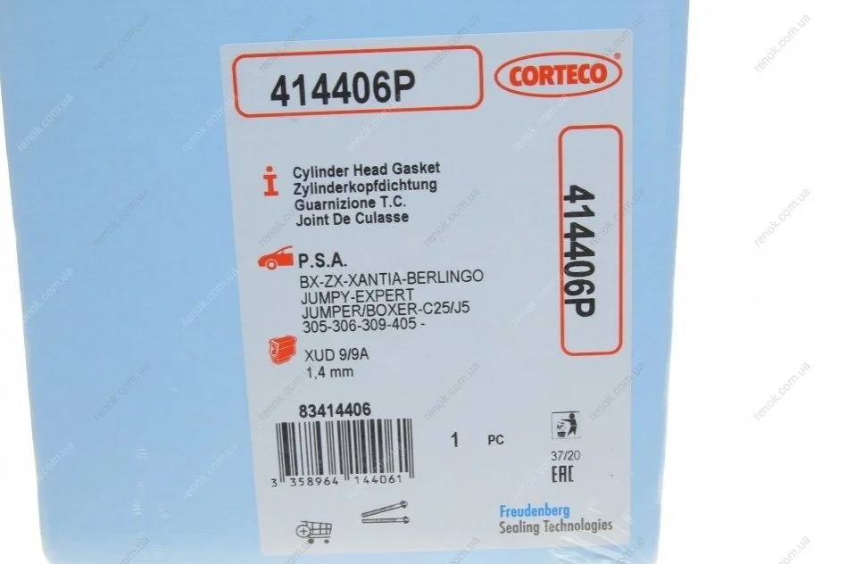 Прокладка ГБЦ Fiat Scudo/Citroen Jumpy 1.9D (1905) (2 метки) (1.4mm) CORTECO 414406P (0209S6, 9623068180, 020901)