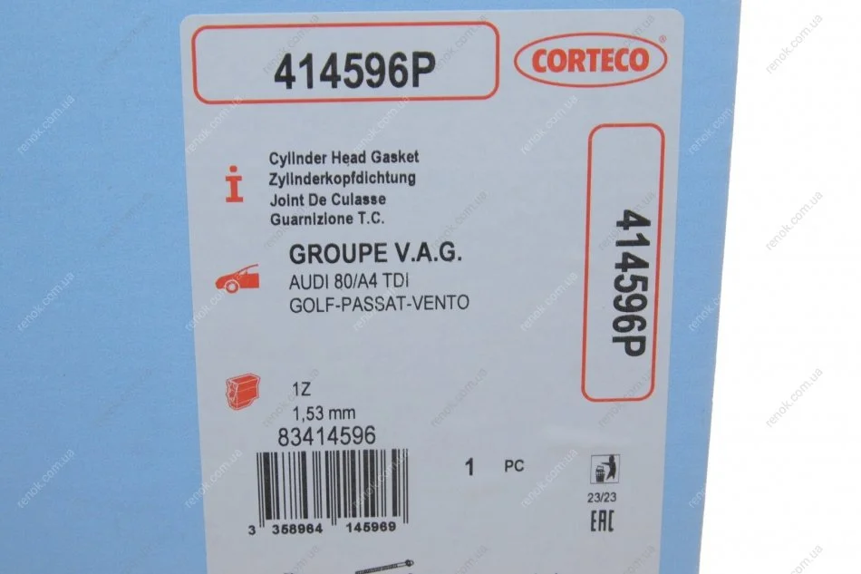Прокладка головки блоку циліндрів CORTECO 414596P (028103383AT, 028103383BM, 028103383BQ)