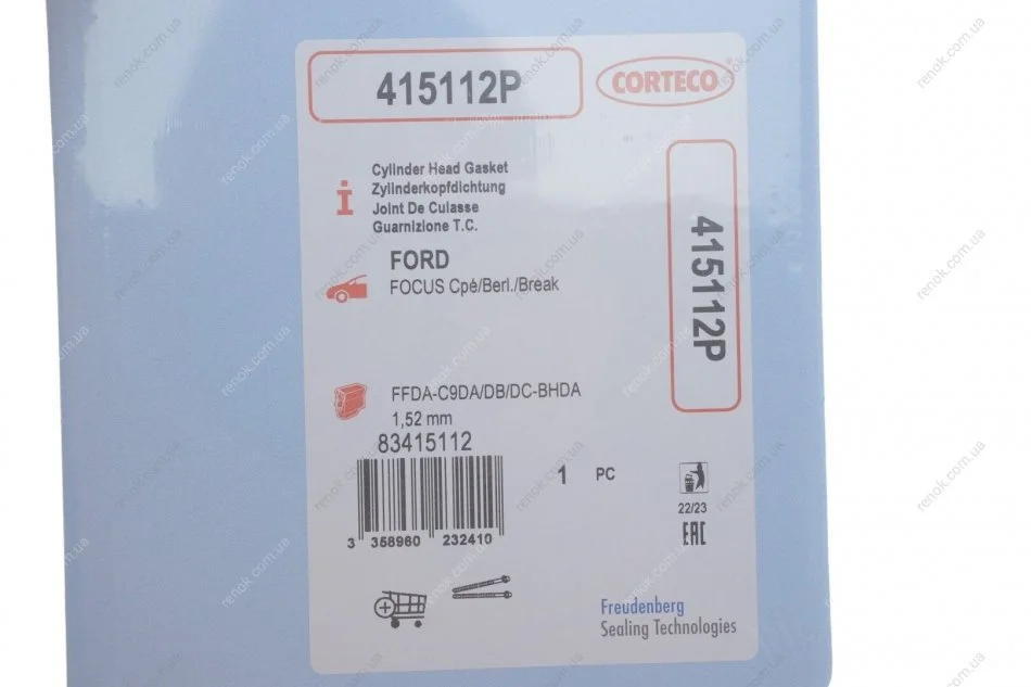 Прокладка головки блоку циліндрів CORTECO 415112P (1078423, 1105922, 1131836)