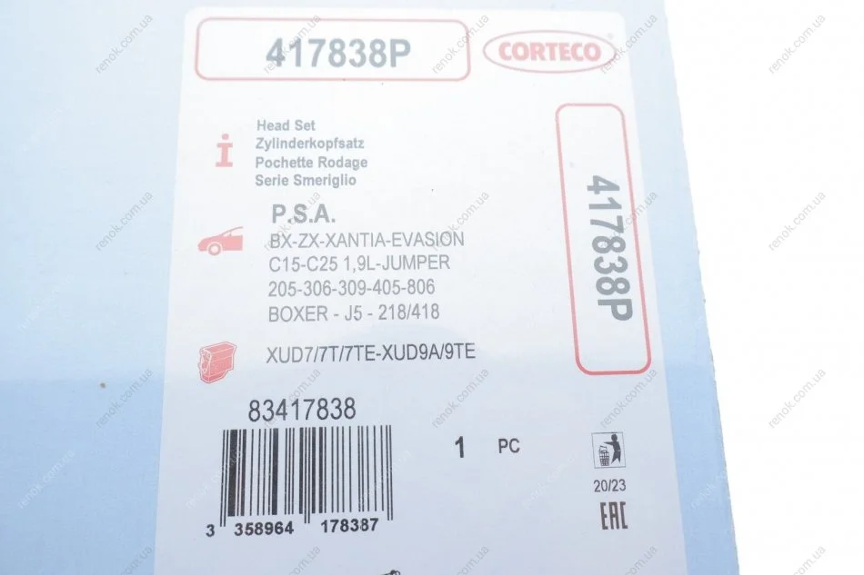 Комплект прокладок двигуна CORTECO 417838P (0197H4, 9567221180)
