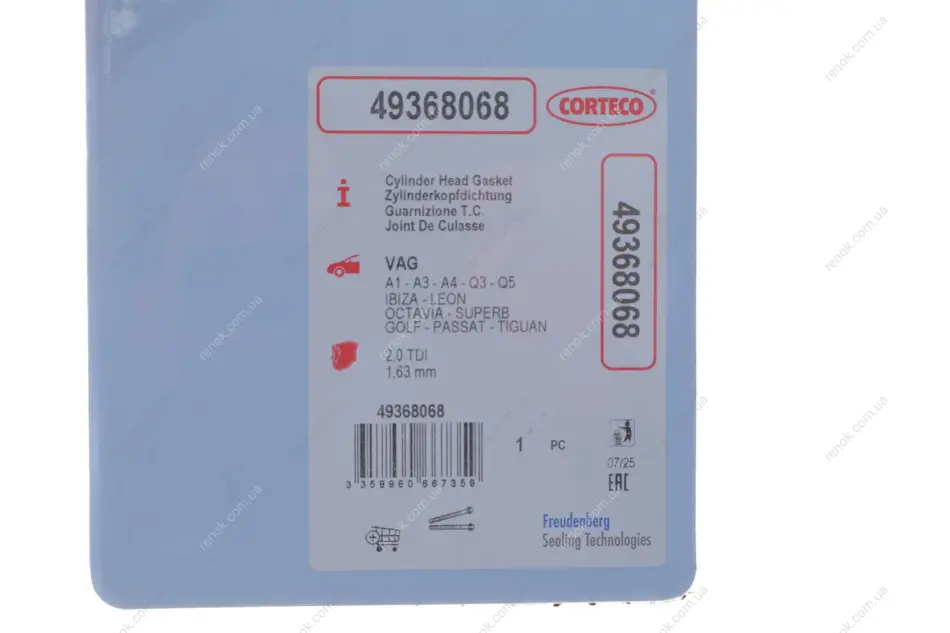 Прокладка головки 2.0TDI Crafter 11-/T5 09- (1.63 mm) CORTECO 49368068