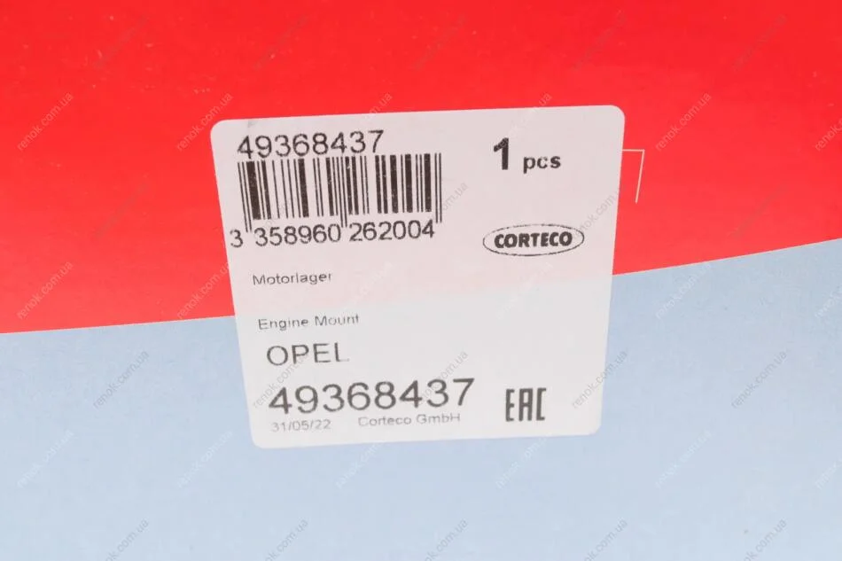 Подушка двигателя (задняя) Opel Astra J 1.3-2.0 09-/Chevrolet Cruze 09- CORTECO 49368437 (13248630, 684224)