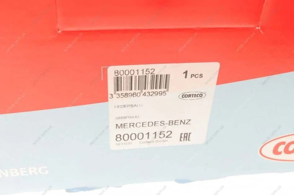 Подушка пневмоподвески (сзади) MB Vito (W639) 03- CORTECO 80001152 (a6393280101, 6393280101)