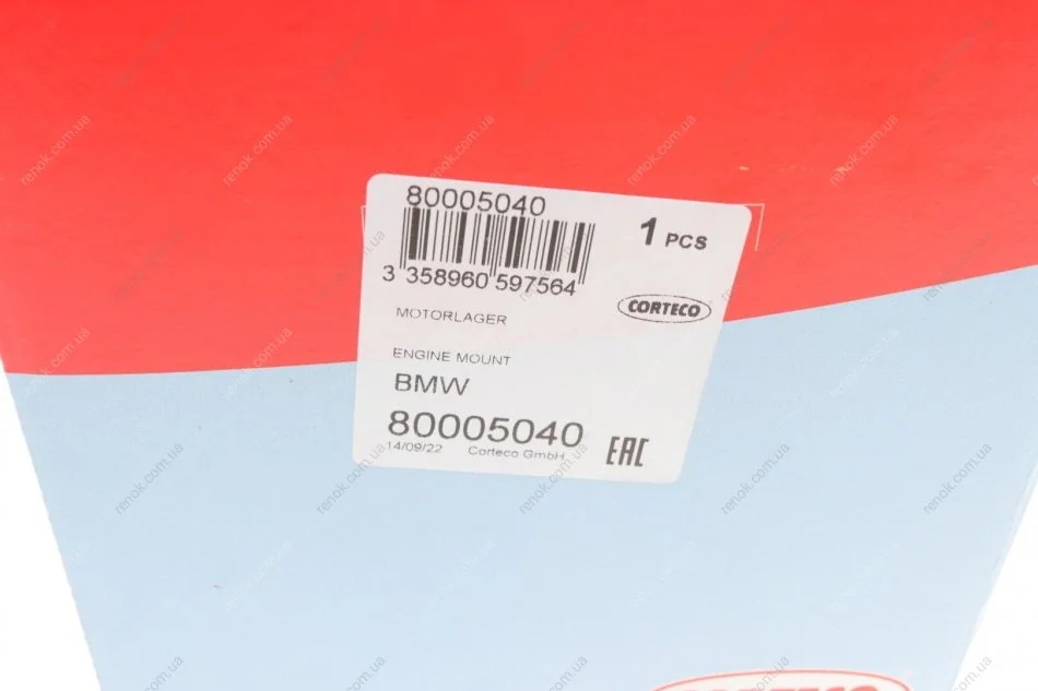 Подушка двигателя (R) BMW 5 (F10/F11) 09-16 (N20) CORTECO 80005040 (22116794472, 22117935148)
