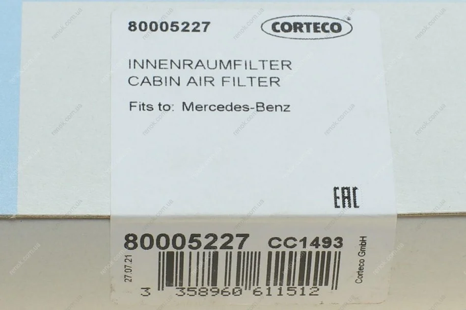 Фильтр салона MB Vito (W447) 14-(угольный) CORTECO 80005227 (4478300000, A4478300000, A9108301200)