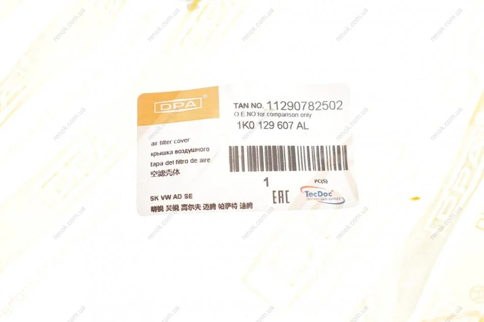 Корпус воздушного фильтра Skoda Octavia (09-13)/VW Caddy (11-15),Golf (07-14),Jetta (06-15),Passat (08-15),Tiguan (08-12) DPA 11290782502