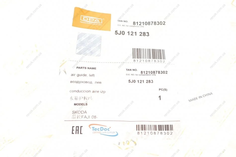 DPA (Diamond Performance for Auto) – бренд, принадлежащий китайской компании Tantivy Automotive, предоставляет кузовные запчасти автомобиля.