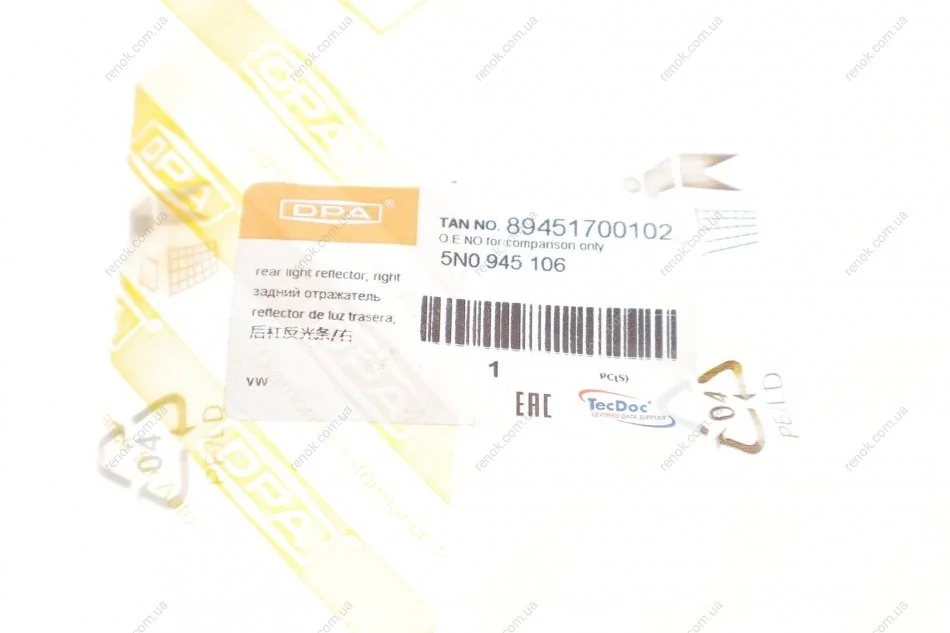 Светоотражатель заднего бампера правый VW Tiguan(07-09) DPA 89451700102