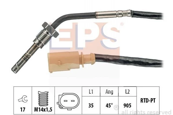 VW Датчик температуры ОГ Polo AUDI, SKODA, 1,2-1,6TDI EPS 1.220.016 (03L906088CH, 03P906088D, 045906088F)