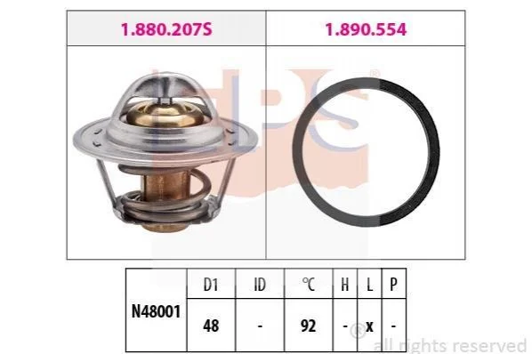 Термостат 92C° Chevrolet/Ford/Opel/VAG EPS 1.880.207 (1338009, 1338042, 1338052)