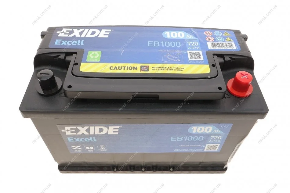 Аккумуляторная батарея 100Ah/720A (315x175x205/+R/B13) Excell EXIDE EB1000 (73325165, 504184319, 93162740)