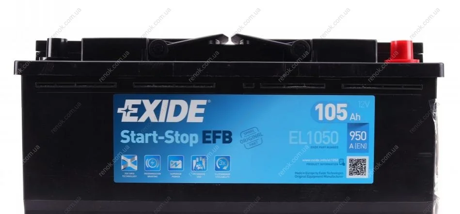 Аккумуляторная батарея 105Ah/950A (392x175x190/+R/B13) (Start-Stop EFB) EXIDE EL1050 (1638153480, 7485151426)