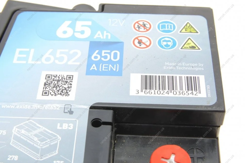 Аккумуляторная батарея 65Ah/650A (278x175x175/+R/B13) (Start-Stop EFB) EXIDE EL652 (7711130069, 1693470, 1834683)