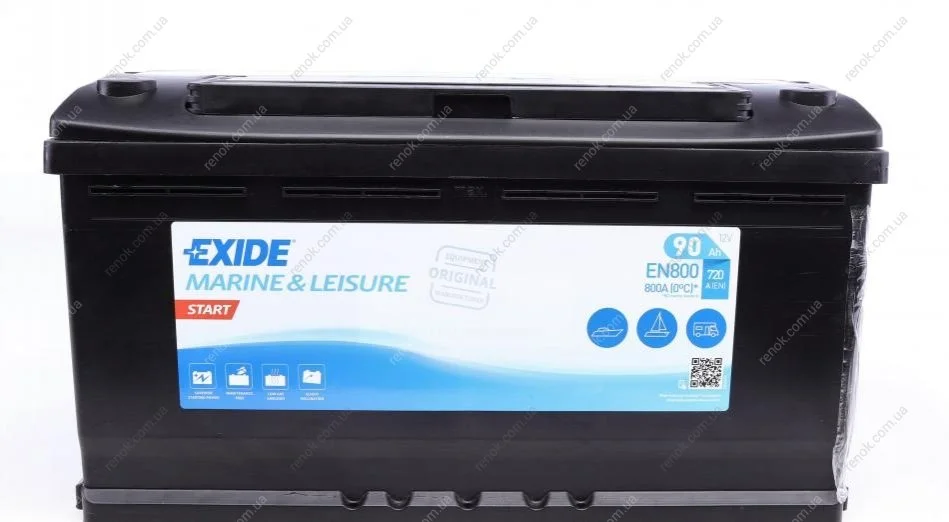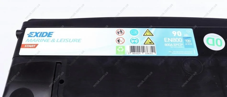 Аккумуляторная батарея 90Ah 720A (353x175x190/+R/B13) (Пуск/для водного транспорта) EXIDE EN800