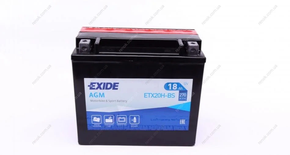 Аккумуляторная батарея 18Ah/270A (175x87x155/+L/B0) (AGM) (мото) (сухозаряженный) EXIDE ETX20H-BS