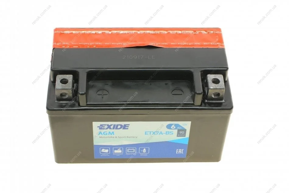Аккумуляторная батарея 6Ah/90A (150x87x93/+L/B0) (AGM) (мото) (сухозаряженный) EXIDE ETX7A-BS