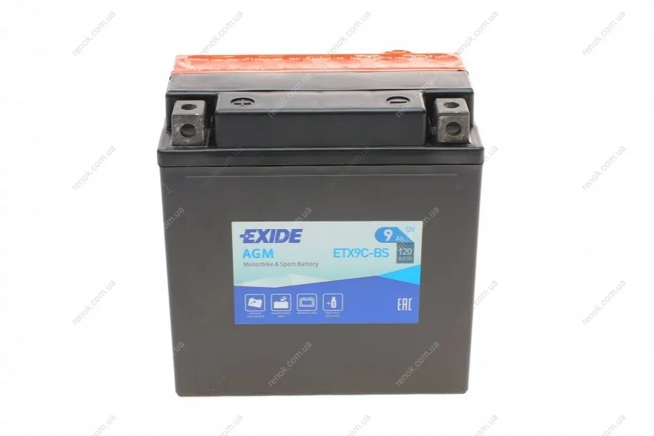 Аккумуляторная батарея 9Ah/120A (135x75x139/+L/B0) (AGM) (мото) (сухозаряженный) EXIDE ETX9C-BS