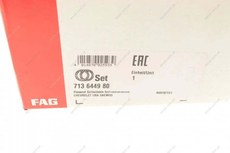 Подшипник ступицы (передней) Daewoo/Chevrolet Epica/Evanda 2.0 05- FAG 713 6449 80 (96292254WB, 96328337WB, 96639584WB)