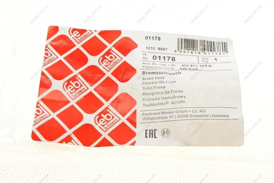 Шланг тормозной (FEBI) FEBI BILSTEIN 01178 (321611775, 321611775B, 861611775)