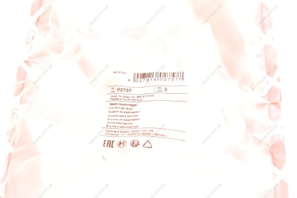 Подушка(втулка) стабілізатора FEBI BILSTEIN 02757 (861411313E, 867411313, 861411313)