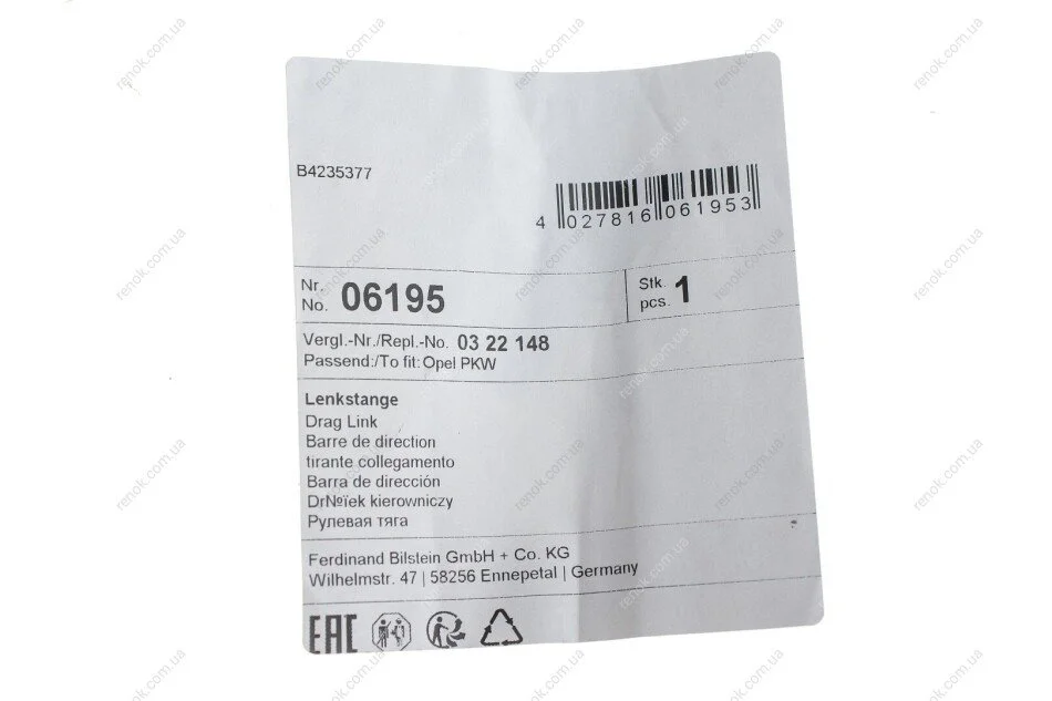 Тяга рул. OPEL поперечн. (Febi) FEBI BILSTEIN 06195 (00322140, 00322148, 0322148)