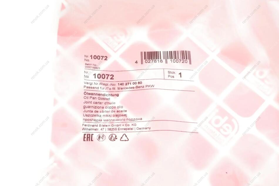 Прокладка поддона АКПП MB Sprinter CDI FEBI BILSTEIN 10072 (a1402710080, 1402710080, 52108332AB)