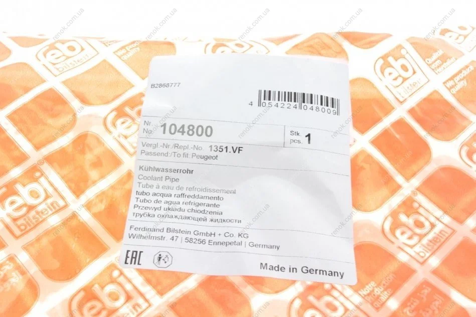 Патрубок системы охлаждения Citroen Berlingo/Peugeot Partner 1.6 16V 08- FEBI BILSTEIN 104800 (1351VF, V758971580, 1351NE)