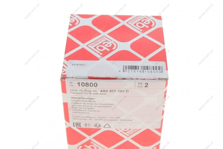 Сайлентблок рычага (переднего/сзади/внутри) Audi 100/A6 90-97 FEBI BILSTEIN 10800 (4A0407183D, 4A0407183C)