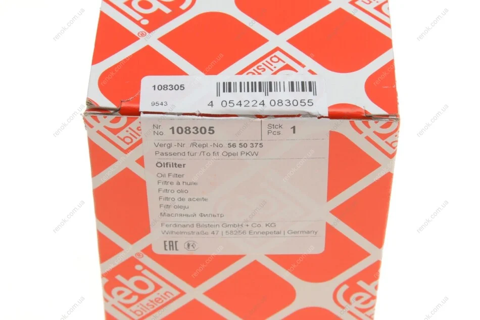 FEBI OPEL Фильтр масляный Astra, Corsa, Meriva, Zafira 1.7CDTI FEBI BILSTEIN 108305 (098018448)