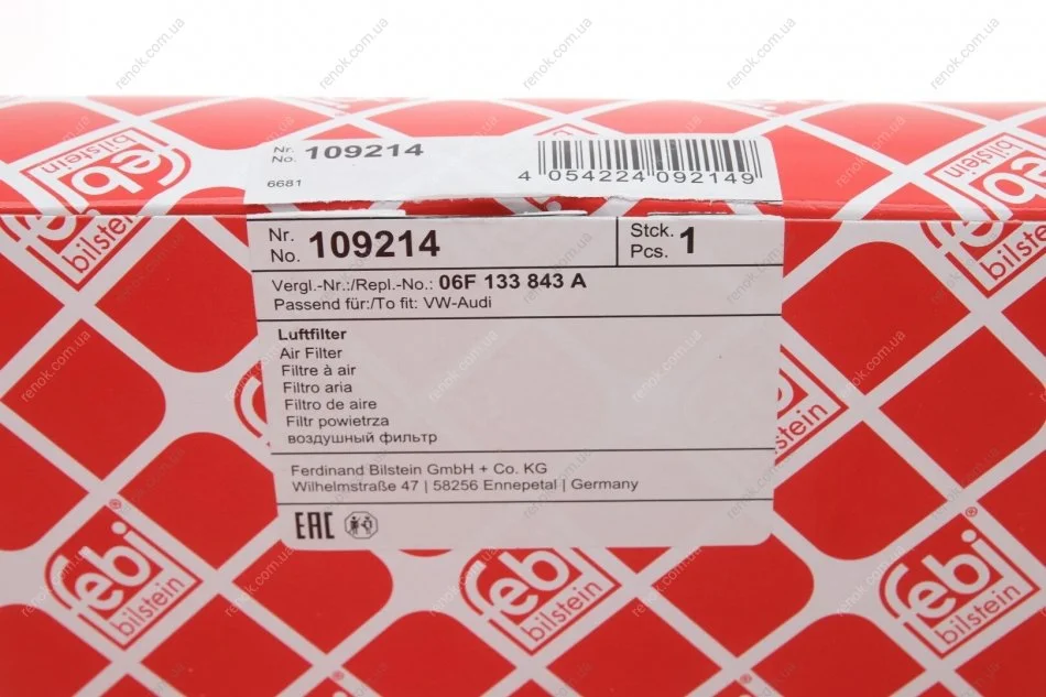 Фильтр воздушный VW Golf 2.0TFSI 04-09/Jetta/Passat 05-10 FEBI BILSTEIN 109214 (06F133843A, 6F133843A)