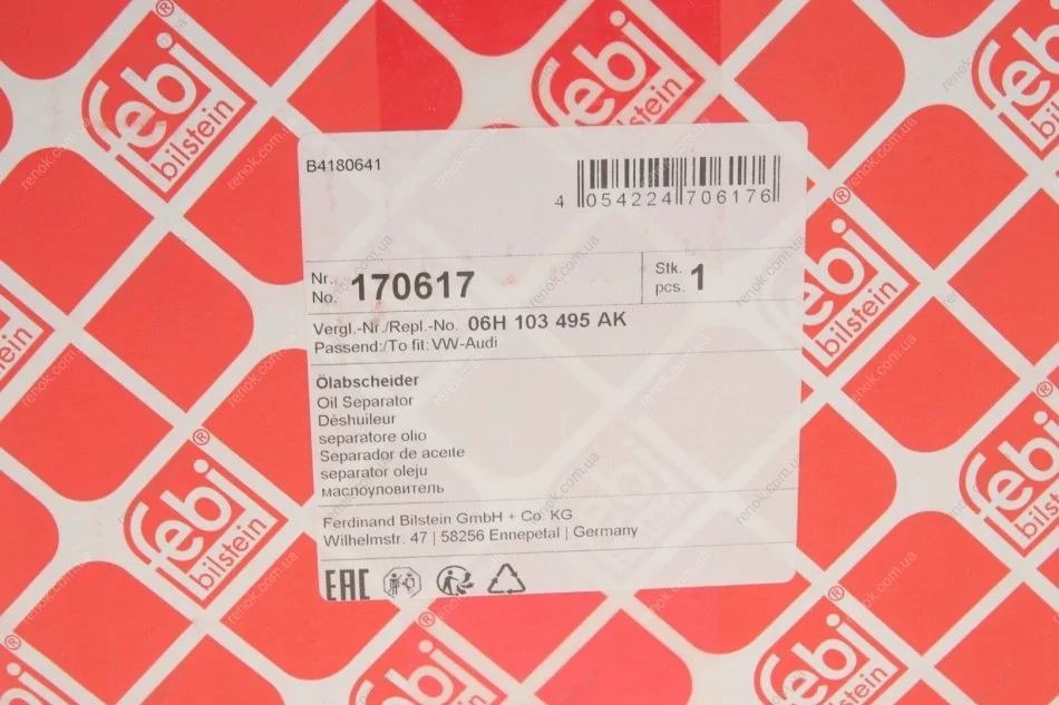 Щиток, вентиляція картера AUDI 2,0 TFSI (FEBI) FEBI BILSTEIN 170617 (6H103495AE, 6H103495AK, 6H103495J)