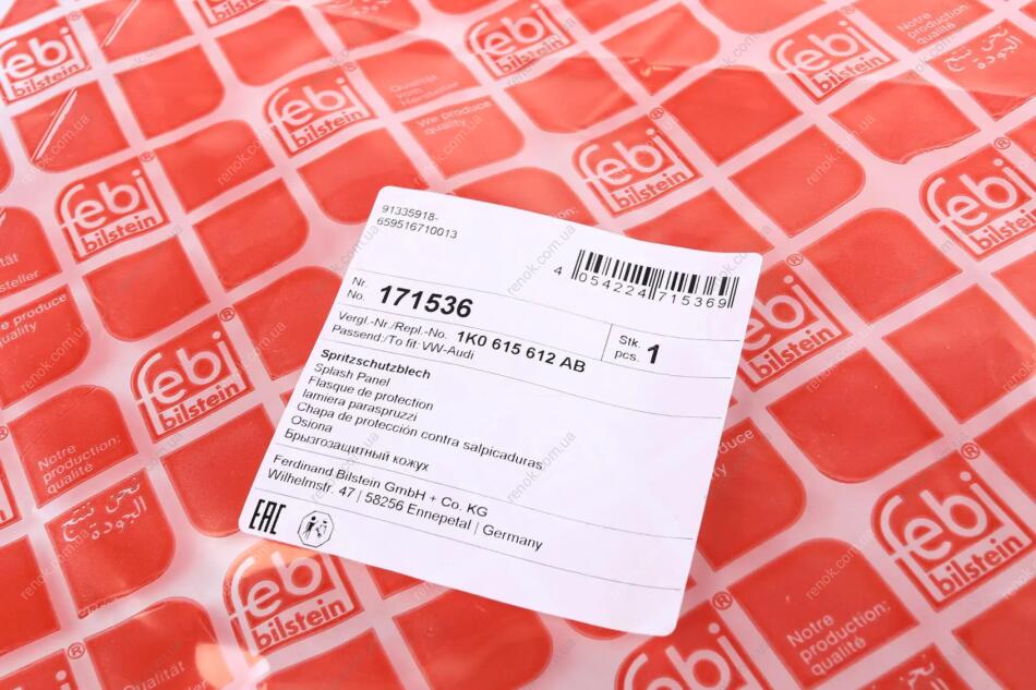Защита диска тормозного (заднего) (R) VW Touran/Golf VI 03-15 FEBI BILSTEIN 171536 (1K0615612AB, 1K0615612T)