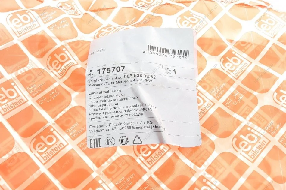Патрубок интеркулера (выпуск) MB Sprinter 2.2CDI 06- FEBI BILSTEIN 175707 (9065280882, 9065283282, A9065280882)