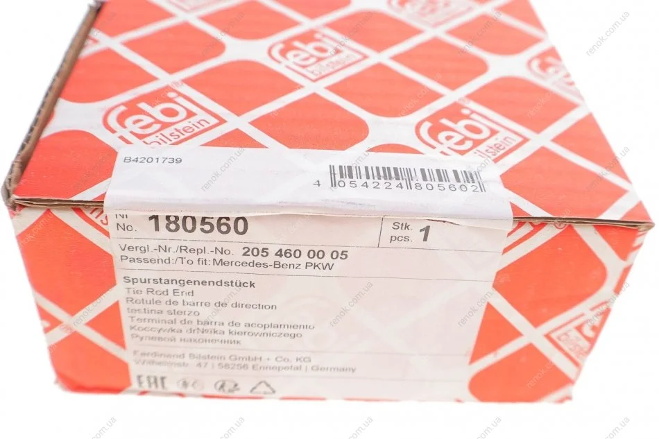 Наконечник тяги рульової з гайкою FEBI BILSTEIN 180560 (2054600005, A2054600005)