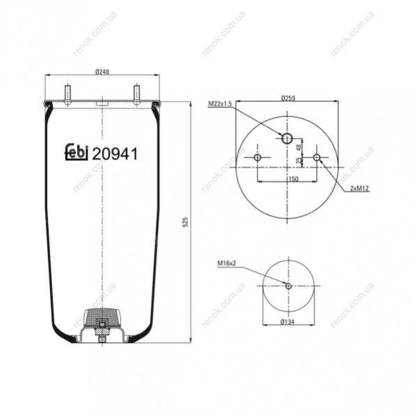 Пневмоподушка подвески без поршня FEBI FEBI BILSTEIN 20941 (0542940030, MLF7047, MLF8047)