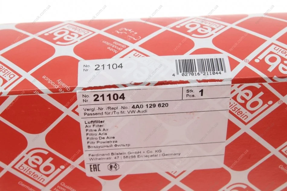 Фильтр воздушный Audi 100/A6 2.5TDI 90-97 FEBI BILSTEIN 21104 (4A0129620)