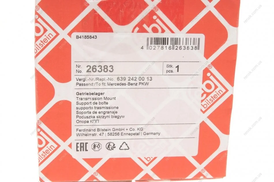 Подушка КПП MB Sprinter 906 06-/Vito (W639) 03- FEBI BILSTEIN 26383 (a6392420013, 6392420013, 68013685AA)