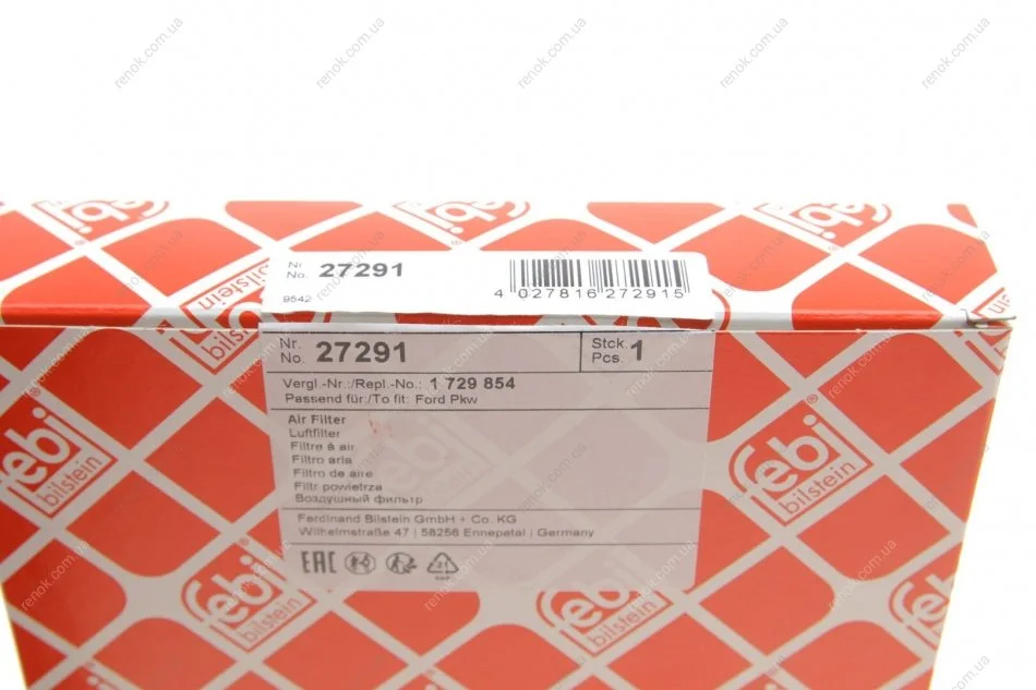 FEBI FORD Фильтр воздушный Fiesta 01-05, Fusion MAZDA 2 03- (217*168*34) FEBI BILSTEIN 27291
