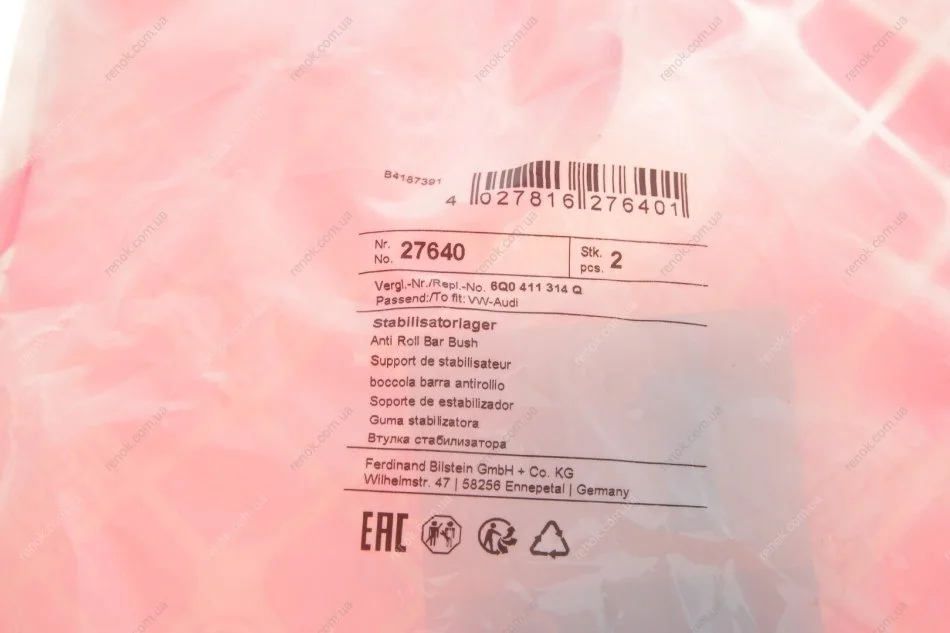Втулка стабилизатора (переднего) VW Polo/Skoda Roomster/Fabia 99- (d=17mm) FEBI BILSTEIN 27640 (6Q0411303AA, 6Q0411305H)
