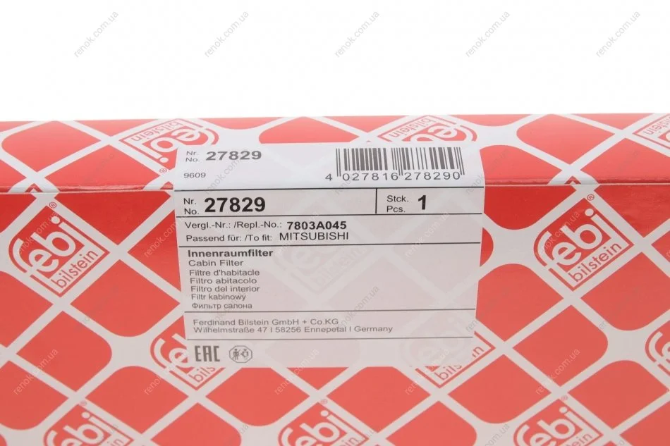 Змінний фільтруючий елемент повітряного фільтра салону FEBI BILSTEIN 27829 (b72771CA1B, 6447ZY, 6447ZX)