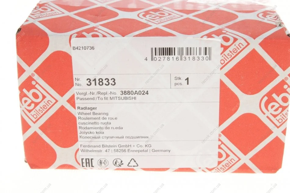 Подшипник ступицы (передней) Mitsubishi Pajero 90- FEBI BILSTEIN 31833 (3880A024, MN103586, MR455620)