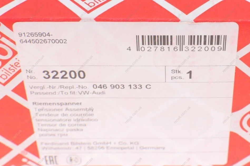 Натяжник ремня генератора Audi A6 2.5D 94-97 FEBI BILSTEIN 32200 (046903133C, 046145173, 046145283)