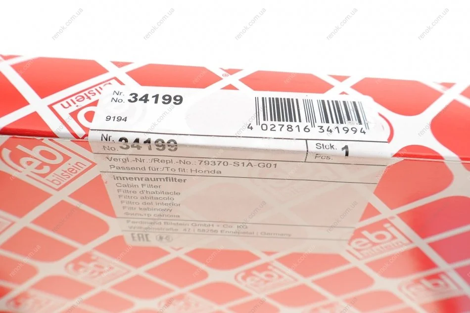 Фильтр салона Honda Accord VI 1.6-2.3/2.0TDi 98-03 FEBI BILSTEIN 34199 (79370S1AG01)