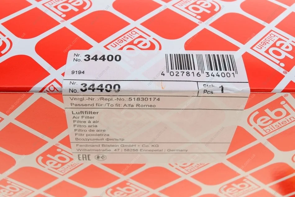 Фильтр воздушный Fiat Doblo 1.6-2.0JTD 10- FEBI BILSTEIN 34400 (51830174, 55184249, 51796537)