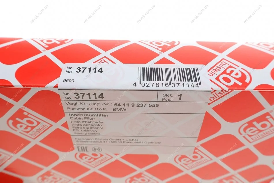 Змінний фільтруючий елемент повітряного фільтра салону FEBI BILSTEIN 37114 (64119237555, 64116821995, 64119395845)