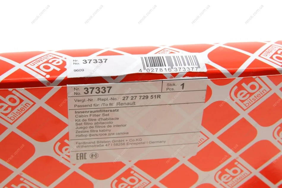 Фильтр, воздух во внутренном пространстве FEBI BILSTEIN 37337 (272770001R, 272772951R, 272772972R)