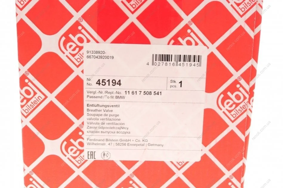 Клапан вентиляции картера BMW X5 (E53) 4.4i 00-06 FEBI BILSTEIN 45194 (11611438272, 11617508541, LKR000040)