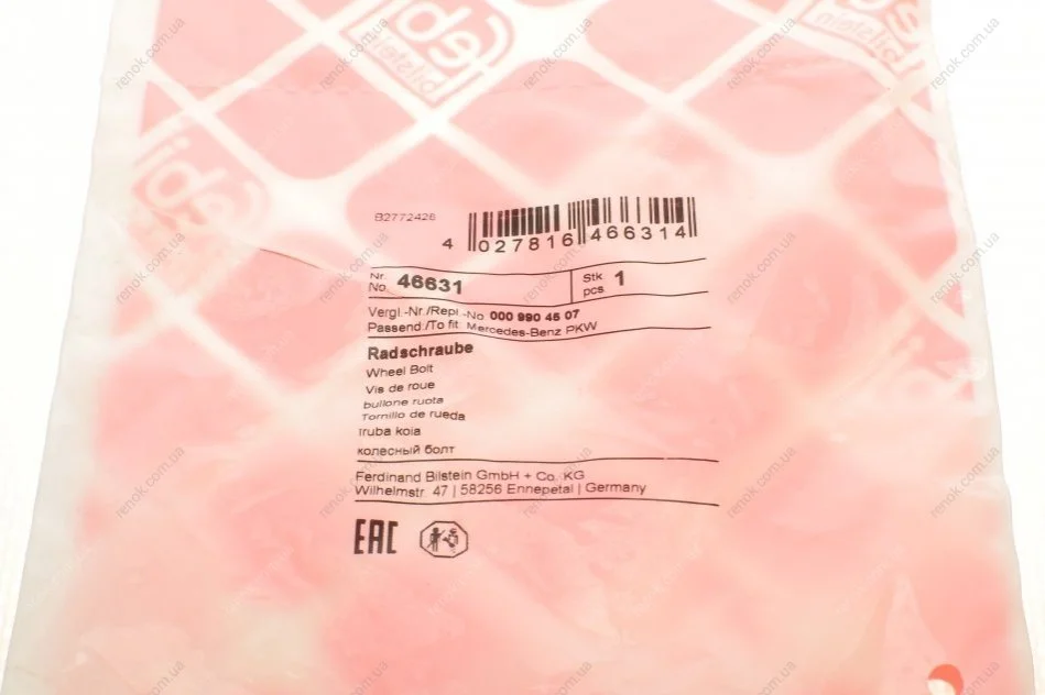 Болт колеса MB (W123/W124/W201) (M12x1.5x23mm) FEBI BILSTEIN 46631 (0009904507, 1704010170, 2104010270)